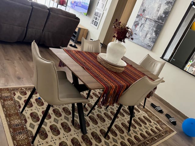 This 1-YEAR OLD 4-SEATER DINING SET consist of four chairs made of pure white leather with sleek black metal stands. Designed for maximum comfort. This set is the perfect addition to elevate your dining space.