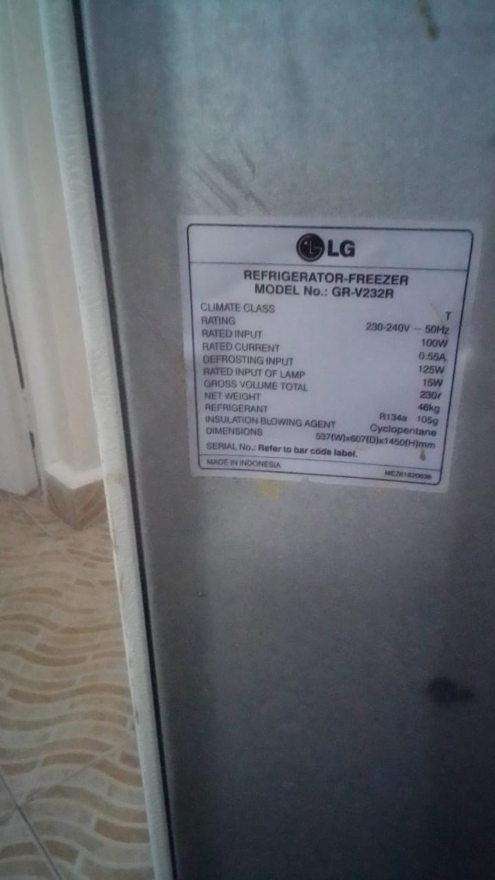 Selling this slightly used 230L LG DOUBLE DOOR FRIDGE GR-V232RL at affordable price