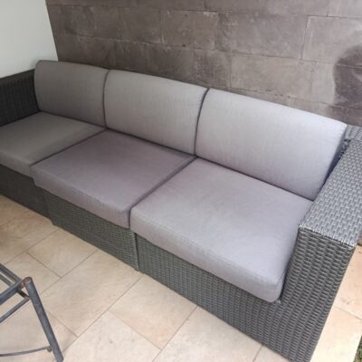 - Sliding Cabinet – Center storage with a unique diamond cut design for a modern touch.