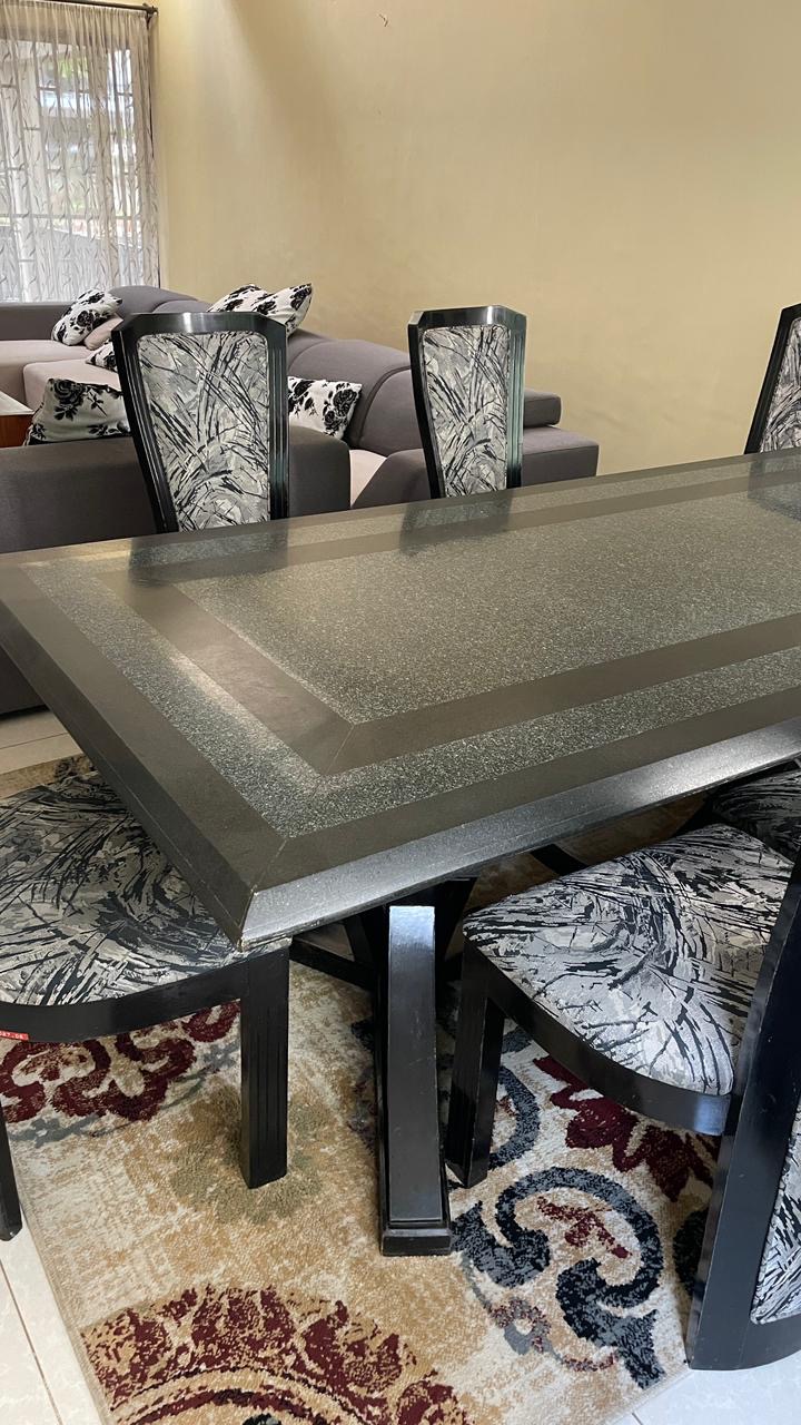 - Grand Dining Table: A sprawling 8-seater surface featuring a thick, premium granite slab with a unique natural grain.