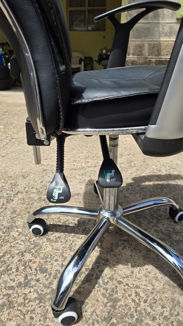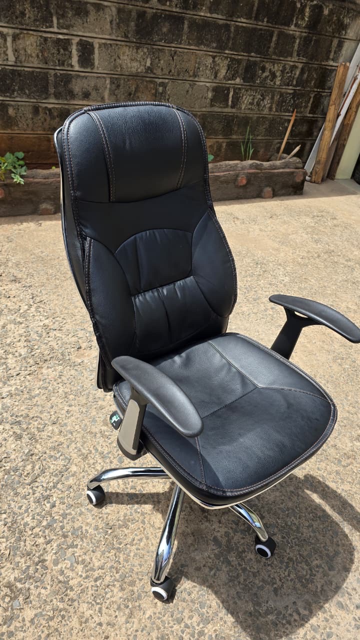 • Executive leather ergonomic office chair. Can recline. Height is adjustable.