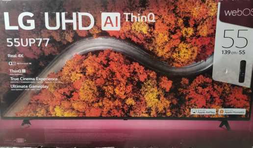 LG UHD HDR Smart TV 55 Inched Up77 Series Thinq Ai (Webos) tv that features a display resolution of 3840 x 2160pixels. it runs on webos and supports hdr10 and 2. if you’re on the lookout for a uhd tv, look no further than lg up77 smart uhd tv 55″ uhd 4k tv. easily connect bluetooth speakers for a true wireless surround sound experience.manage all your settings in one place with modes optimized for various game genres: fps, rpg, and rts. control contrast with black & white stabilization for better visibility.access the netflix, disney+, and apple tv apps. bring the cinema home. filmmaker mode and hdr bring you a more immersive viewing experience.the tv has hgig that recognizes tv performance and picture quality and then tunes hdr graphics to provide the ultimate hdr gaming experience.