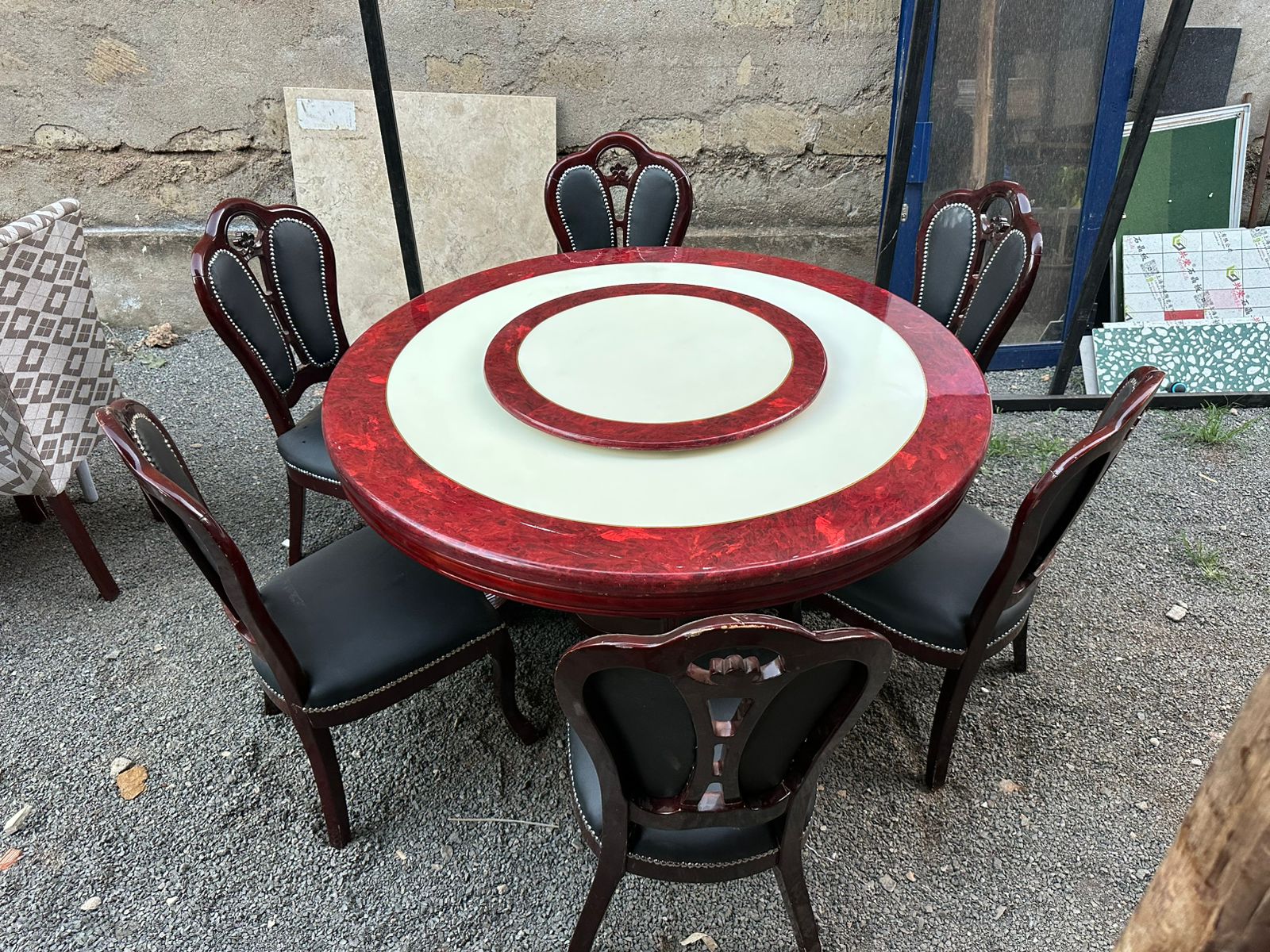 This Round Marble-Top Dining Table is a great pick up for anyone who values both quality and practicality. The smooth marble surface gives it a neat, high-end feel and is easy to clean after meals. At the center, it features a built-in part (lazy Susan) that makes serving food from any side simple and convenient- ideal for family meals.